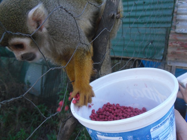 9:00am supplements with Mel! Generally a favourite duty amongst volunteers, this involves hand feeding monkeys a mixture of Nestum porridge, syrup and crushed vitamins/minerals as a means of ensuring that the monkeys receive all the nutrition that they require.