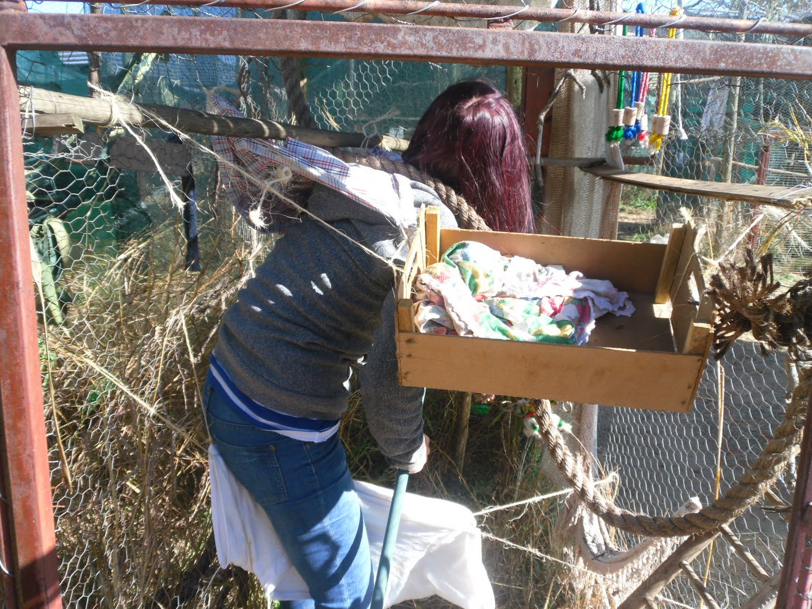 – Volunteer duties of course! 1:00pm Top-ups with Tracey, Clothing enrichment of cages and 3:00pm pellet time.