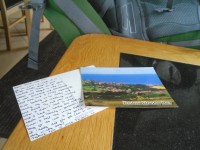I spent the rest of the day at Candy’s, a quaint little cafe overlooking the sea. I unwind with tea and cake and I decide to write ‘Thank you’ postcards to send alongside boxes of chocolates to The White Swan and to Anwar for the help that they gave me during the walk.