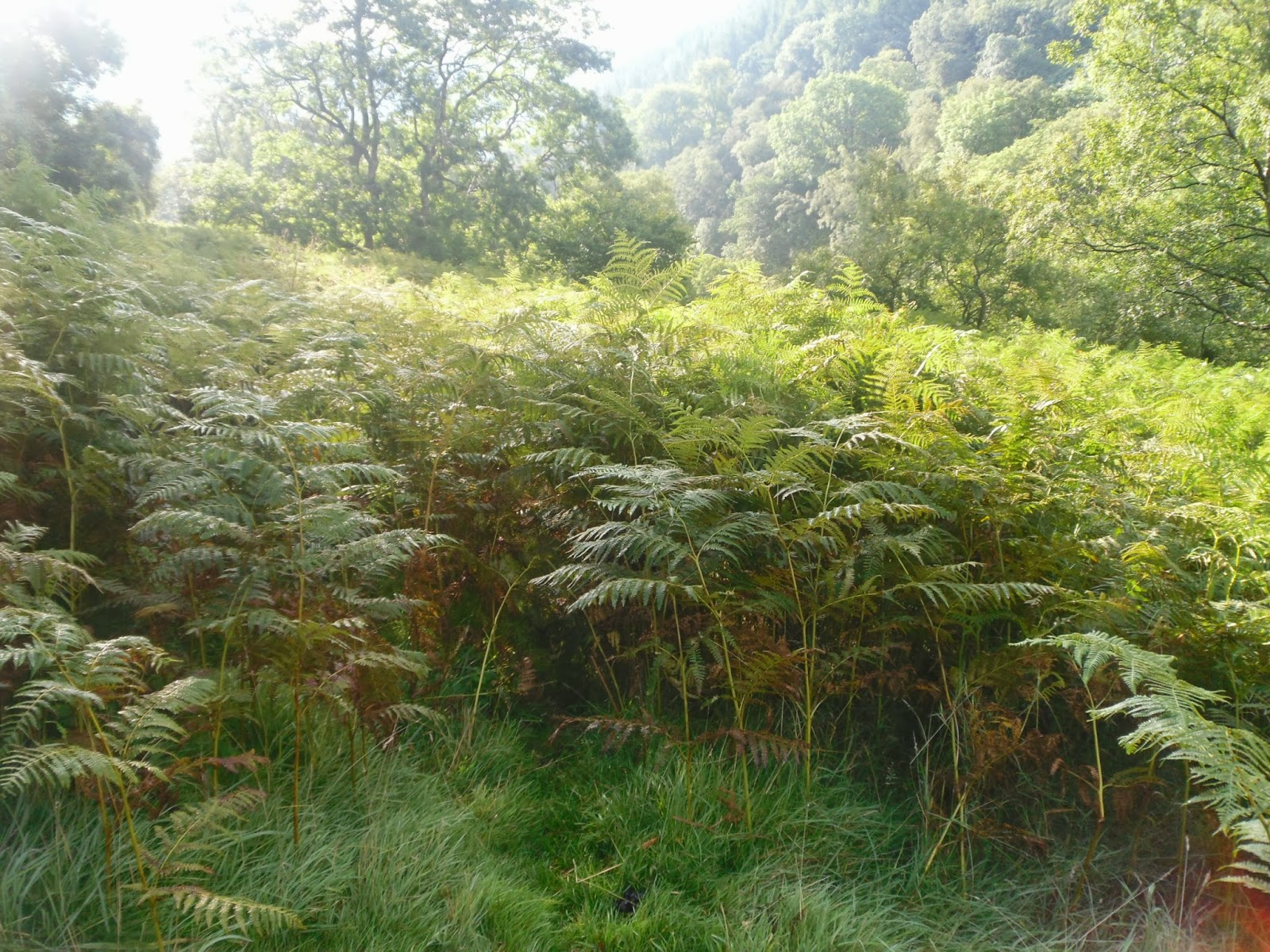 I march through the undergrowth, stepping where the plants have already been flattened. Sheep? Maybe someone has walked down here already? I continue through the tangle of undergrowth. My clothes and arms are wet with dew.