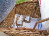 Home-made flapjacks I walked past near Ingleby, targeted for c2c walkers.