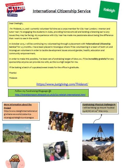 24th June 2013: Lack of updates due to lack of donations lol. I’m still remaining high spirited and I have my fingers crossed for the Jack Petchey grant. I have 2 plans in the pipeline: on Friday 28th June I will be holding a cake sale at the City Year office. Last week, I attended a ‘Public Relations’ training, and I plan to submit an article to a local newspaper in order to raise publicity for ICS/fundraising.
