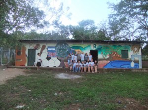 The days passed by quickly for our last week in El Cacao. Instilling the help of the youth group and artists, we painted a colourful and eye catching mural on the outside of the community centre.