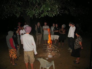 The beef, surprisingly soft and tender, was marinated with a fresh chilli and garlic sauce. 3kg of fish was pan fried with lemon and basil. The mains were accompanied by salty, garlic potato chips and stir fried carrots with shredded cabbage and I made fried strawberry pancakes. Not too shabby considering we cooked it all on a log fire eco oven! :). There was a warm, team ambience and it was a wonderfully satisfying end to a long week of eco-ovens.