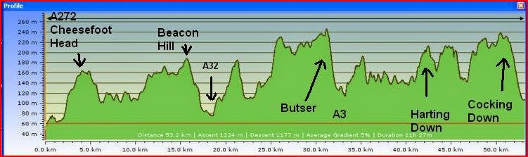 I set myself the target of reaching Amberly, approximately fifteen miles away. I ascend and descend Heyshott Down, Bignor Hill, and Westburton Hill.