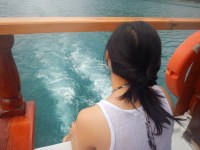 We board the boat and I climb up a short stairway to the upper deck. I watch as speckled fish flip-flop in the crystalline lake beneath us. As the boat disembarks, I feel a deep sense of clarity as I take in my surroundings. I admire the glorious lustre of the water and the earthy scent of the valley surrounding us.