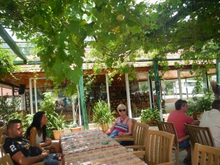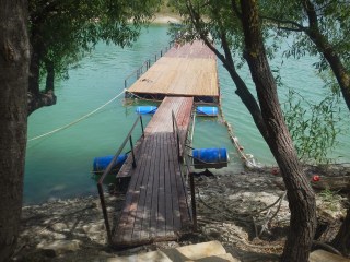 After our swim, it’s just a short boat ride to Paradise restaurant by the waterside. Long clothed tables are situated beneath a trellis of vineleaves. We are served a fresh, crisp salad, trout grilled to perfection and a side of sautéed potatoes. Dappled sunlight beams across the eating area with the backdrop of Green Canyon Lake just a stone throw away. We watch small boats drift in the distance and a group of fishermen at a wooden pier.