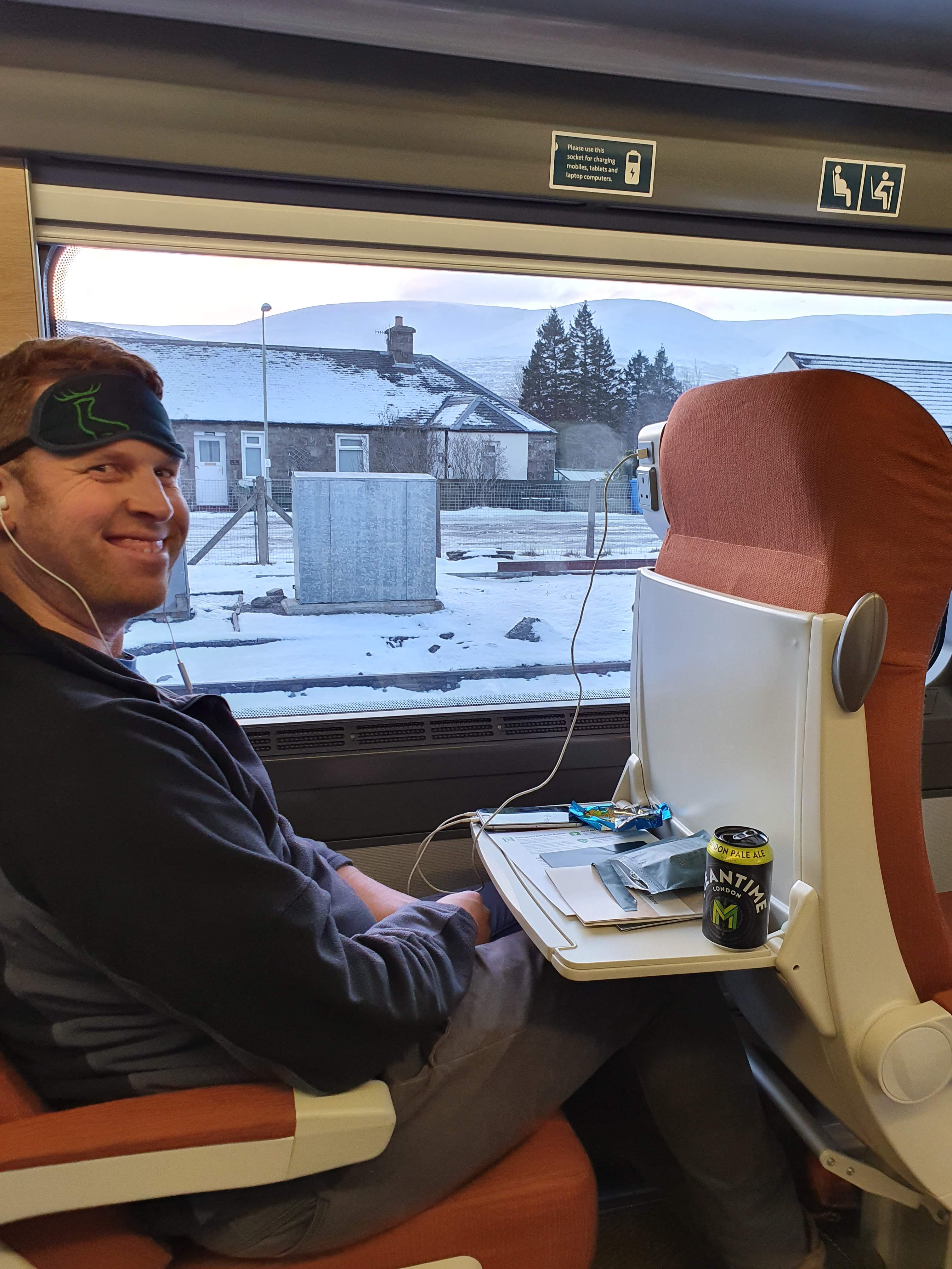 We chatted to the lull of the train, eventually pulling on eye-masks before we rolled into the dawn light of the Highlands.