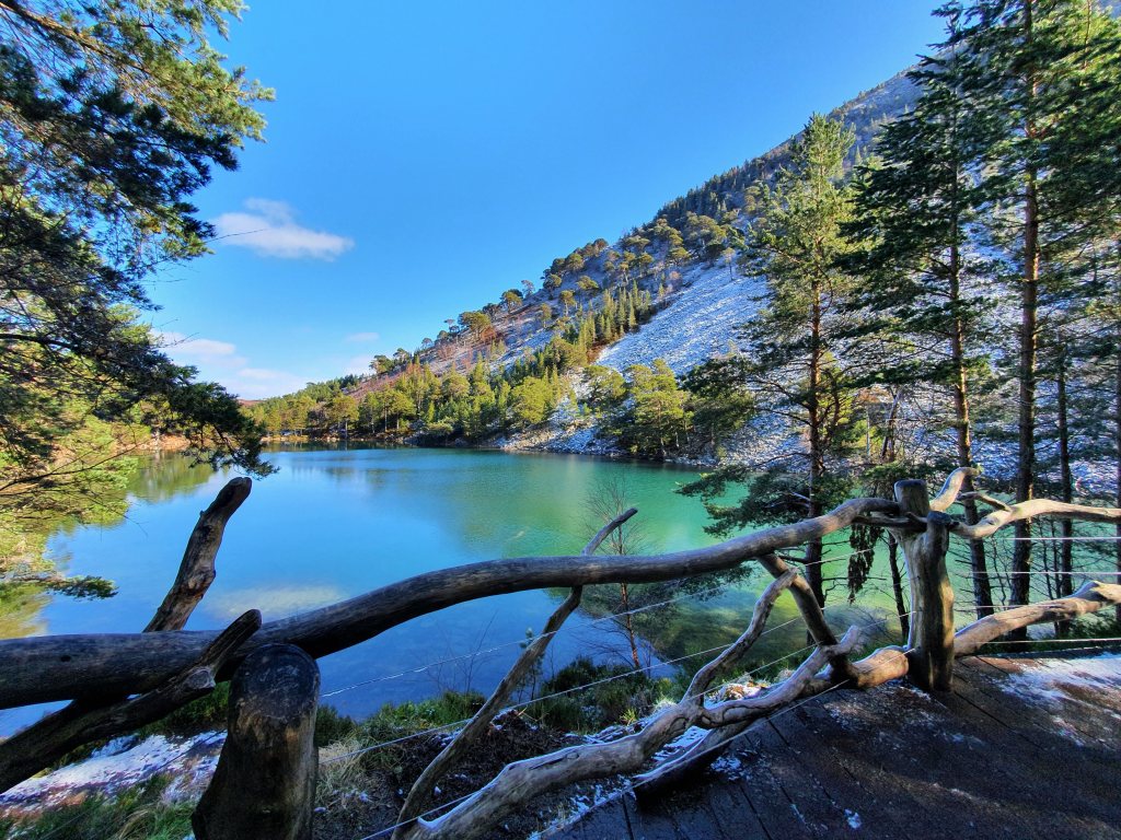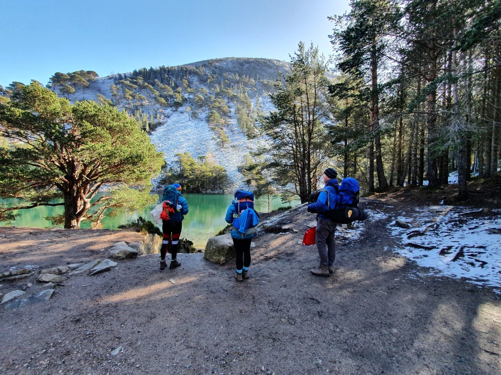 The trail to Ryvoan Bothy was 8 miles away at Cairngorm Reindeer Centre in Glenmore. We took the bus to the trailhead (whilst accidentally missing our stop and looping back via Aviemore Ski Centre!). The trailhead from Glenmore to Ryvoan Bothy was only 3-4 miles. The walk passed snow capped mountains and the stunning An Lochan Uaine, a turquoise coloured loch in pure wilderness and reachable only by foot.