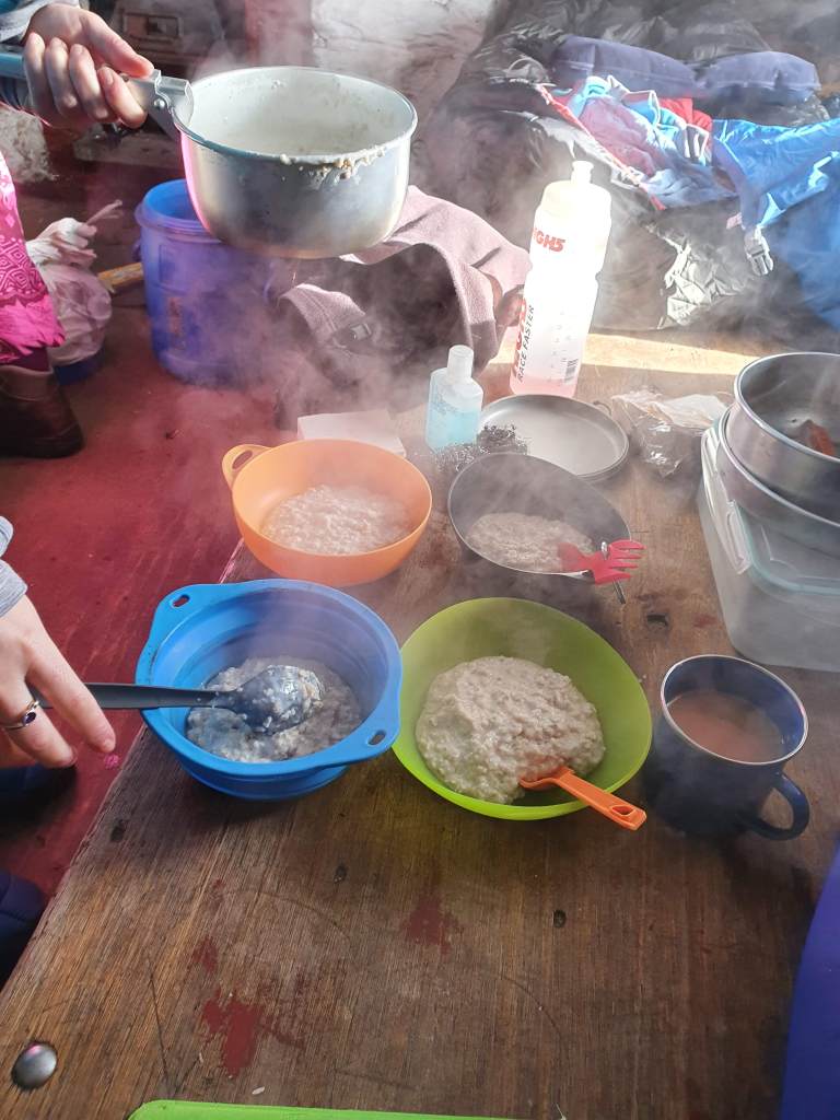 The morning of 14th March was a difficult one. Every member of the party was groggy, numb and fatigued from trying to keep warm the entire night. We heated up porridge with milk powder in an attempt to stay warm, whilst the Bothy stayed icy cold at 0°.