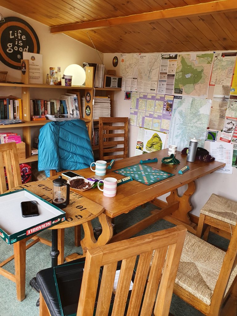 We were due to stay another night at Ryvoan. We huddled together for a discussion, the immediate conclusion was that it would be foolhardy, uncomfortable and dangerous to stay without any wood to produce a heat source. We packed our rucksacks and made a plan to explore accommodation options in Aviemore. Keeping with our Bothy theme, we settled for Eriskay, a B&B which offered Glamping Pods and a ‘Bothy communal area’ for board games and cooking!