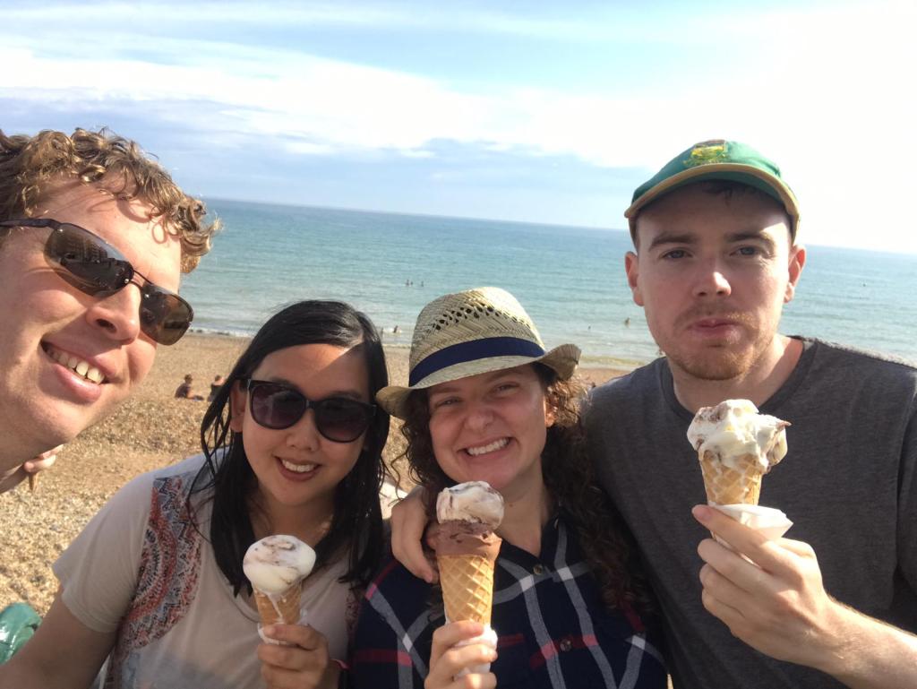 On 24th July 2021, Alex and I visited Pat and Sarah for a sunny weekend in Portslade. We walked past a mobile NHS vaccine unit and managed to nab the last 2 Pfizer jabs, making us fully vaccinated! We celebrated with ice cream and a swim in the sea straight after.