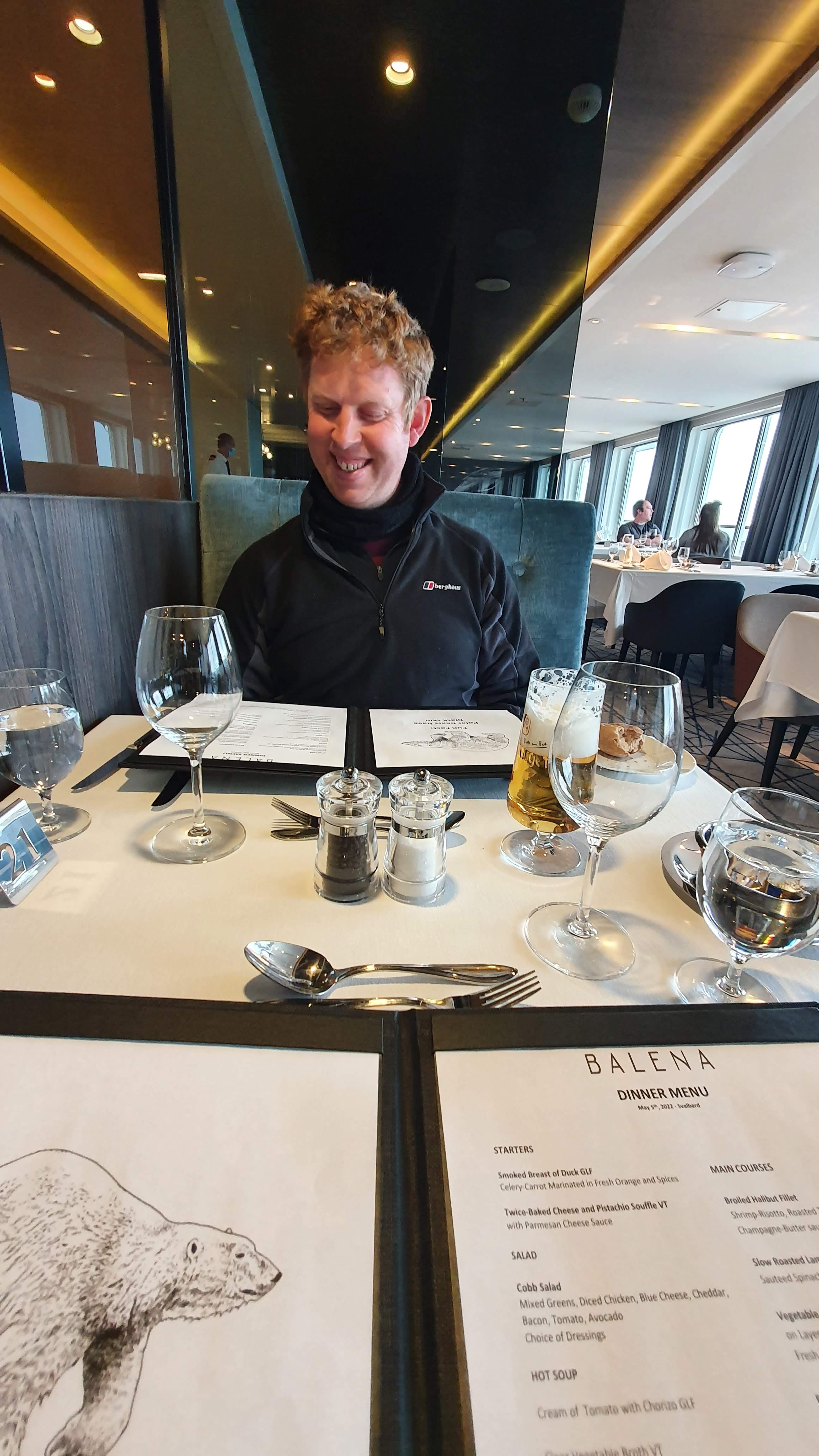 For our equipment, looking back I wouldn’t have carried a laptop with me. I downloaded a selection of Netflix movies but this wasn’t necessary, as there was a modern smart TV installed in all cabins. The TV had an array of films available to watch in the evenings. There were board-games and a library for reading material as well. I’d recommend bringing binoculars with you. A complimentary water bottle is provided as well.