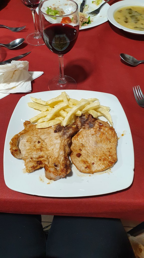 In the evening, I approached Restaurante Pérez and reached the bar area the same time as some other fellow pilgrims. I asked for a table for one in Spanish but was immediately invited by Jeffrey, an American hiker, to join them at their table. There I met Marcus from The Netherlands, Mari from Canada, Jeffery from the USA and Renee from Washington D.C. It’s has been a very long time since I had dinner with strangers but conversation was flowing and jokes were made about the trail. I learnt that “Buen Camino” meant good road in Spanish, but it can also mean good path, path being both physical and spiritual. It is the greeting shared by pilgrims and with local people who wish you well on the journey. We enjoyed the 3 course Menu Del Dia with bread and wine for 12 Euros. The pelegrinos were warm and welcoming and delighted to hear that it was only my first day on the trail, they spoke of how the Camino made people feel. Before leaving, Renee whispered a quick tip to me “Do you have anti inflammatories?” Take them before you start walking, not after. Nip the pain in the bud before you start”.