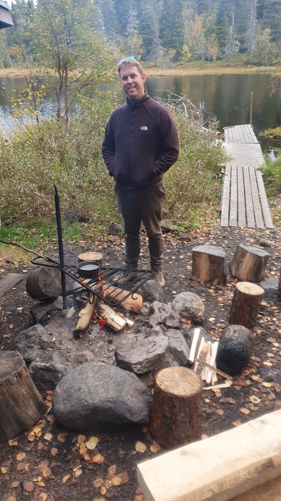 We conversed together around the fire. Alex and I stupidly admitted we did not check the lighter restrictions (for all readers they can be brought on inside hand luggage!). The Finnish ladies seemed surprise too, ‘they removed it from your bag?‘ She asked in curiosity. Without hesitation, she took the small box of matches out her pocket and handed them to us. My jaw dropped open. I asked to make sure the gesture wasn’t compromising their safety or desire for warmth and they said they had 2 boxes. I tripped over my words in gratitude. It was gestures like this where we witnessed the typical Finnish traits of kindness, resilience, a shy nature and a love for the outdoors. As the ladies left to continue their hike, a solo female trekker with ashen blonde hair, forest-green combat trousers and a rucksack larger then her stature joined us. She had a large hunting knife strapped to her waist as she glided to the campsite while omitting an aura that I can only describe as ‘Lara Croft’ like; component and strong.
