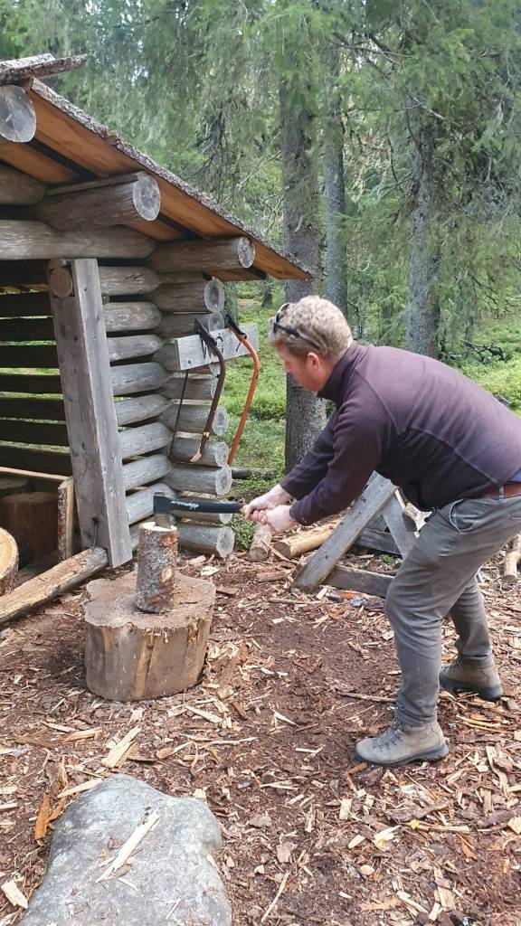 Alex set to cutting firewood to get the fire going (In Finland, National Parks provide sheds of complimentary firewood) whilst I conversed with the Finnish ladies. They were bravely attempting to finish the trek today, even with hiking in the dark, all in pursuit of a hot pizza as a reward at the end. Alex dumped the dry, split wood on the ground only for us to have a mild panic in search of our lighter. It suddenly dawned on us. God. It’s been taken by security! We have all the cooking equipment, but not the life giving matches or a lighter to ignite a flame. I suddenly noticed the purple security sticker on Alex’s strap, the hold luggage was searched. I feel the similar bubble of self-frustration and try to think back to the Isle of Skye where I was certain I brought matches with me. No rationales. No excuses – this is our fault and we’ll have to deal with it.