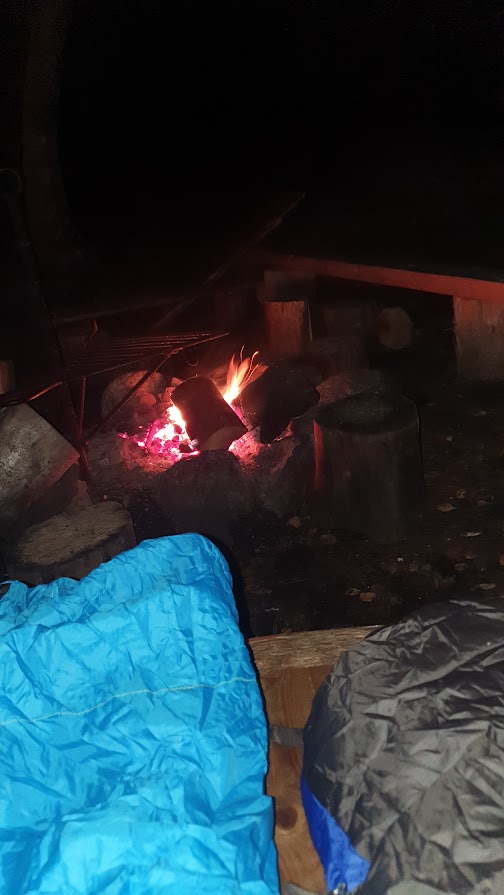 We prepared a warming dinner of tomato meatballs with my favourite packet of Idahoen mashed potato (highly recommended!). We spent the evening conversing with Helena, the female hiker, by the crackling fire. She was on the trail whilst her husband was in Northern Finland running a photography exhibition. I admired her tenacity to go out and explore solo after a long road trip away from her hometown.