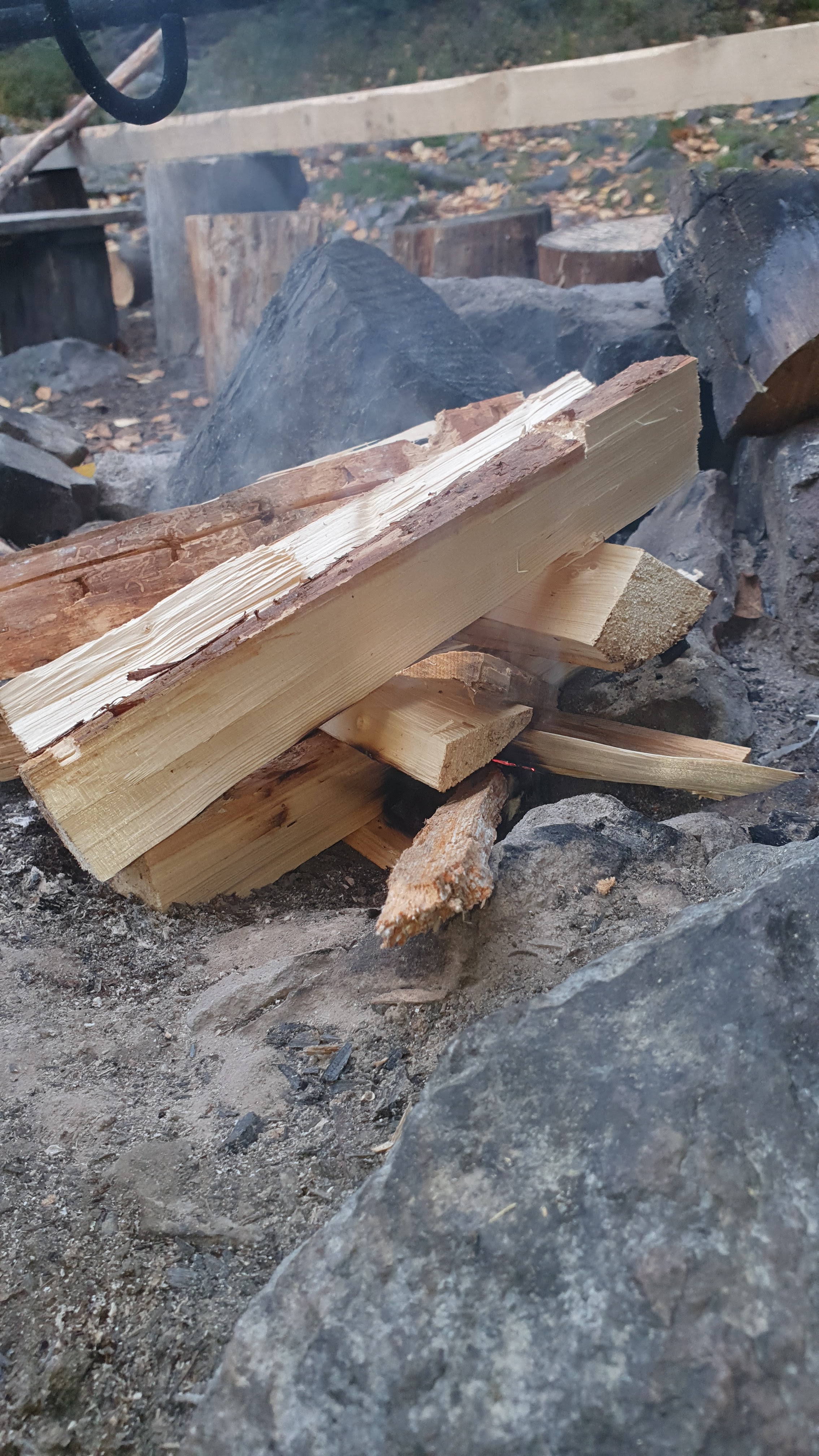 The Finnish lady watched as I attempted to ignite the smouldering ashes with a tissue, gently blowing on the rising warmth. She immediately knelt towards me and struck a match she had in her pocket. The roar of golden, flickering warmth made me feel more human again.