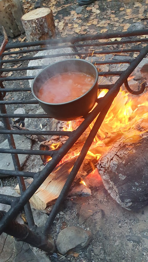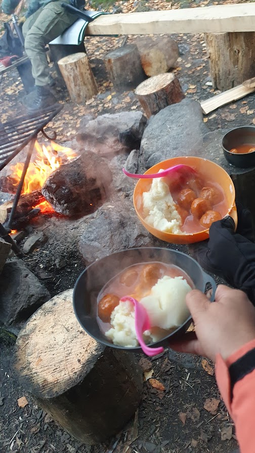 We prepared a warming dinner of tomato meatballs with my favourite packet of Idahoen mashed potato (highly recommended!). We spent the evening conversing with Helena, the female hiker, by the crackling fire. She was on the trail whilst her husband was in Northern Finland running a photography exhibition. I admired her tenacity to go out and explore solo after a long road trip away from her hometown.
