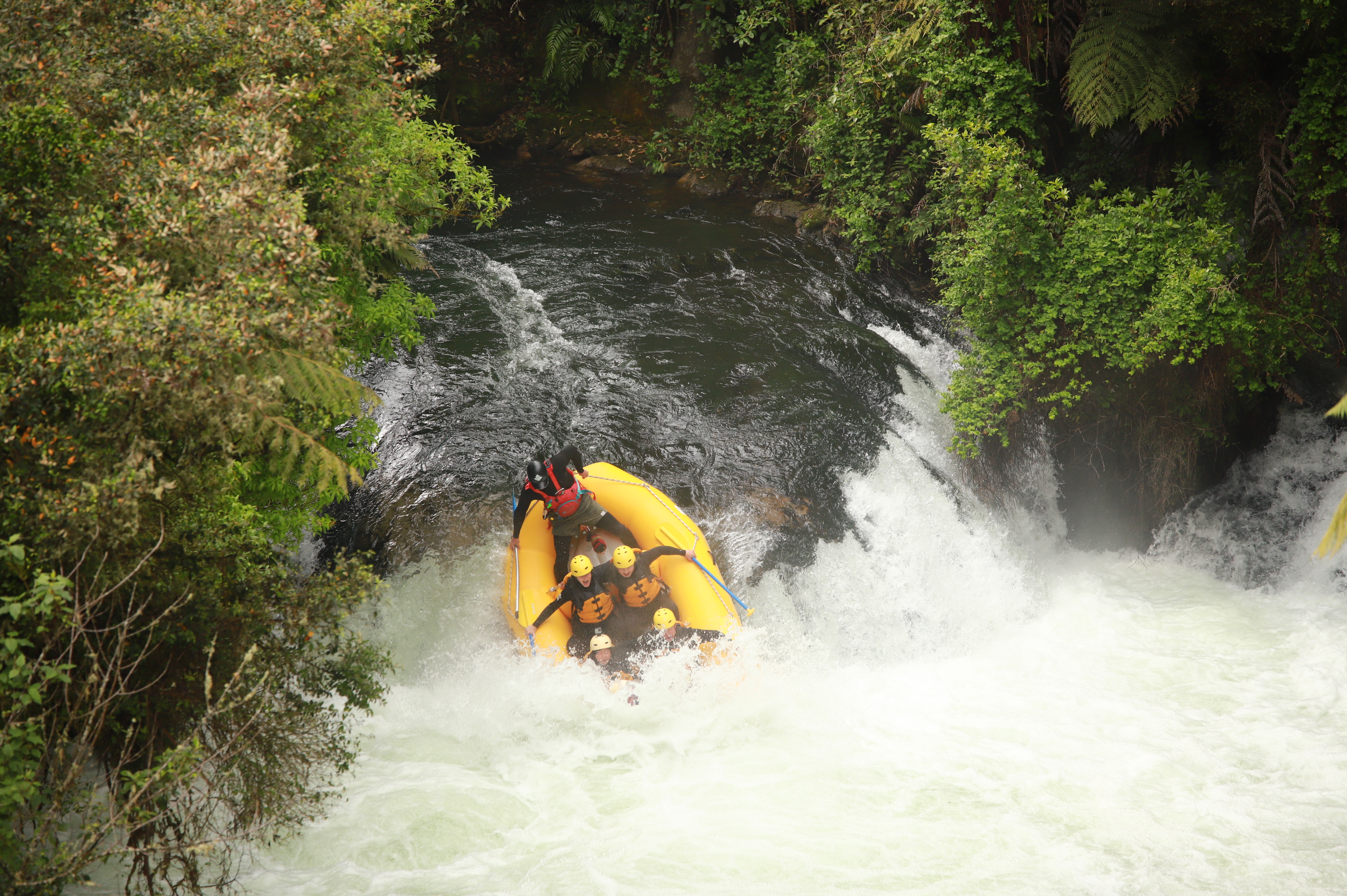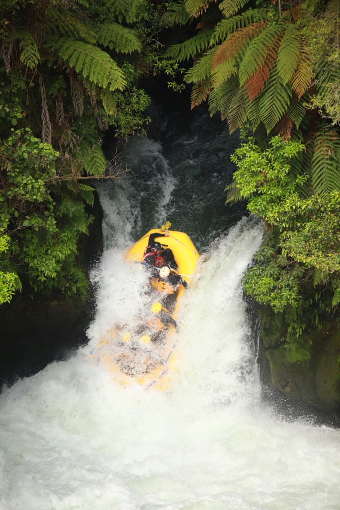 We felt the kayak tip forwards as we plunged head-first into the water, in these brief seconds we’re at the complete mercy of the rushing water, holding onto the support ropes for dear life. From crashing downwards to bobbling away from the waterfall, there is rush of pure excitement combined with relief that we’re still in the boat. Statistically the guides said it’s a 50/50 chance we flip upside down, if it’s some reassurance, Rotorua rafting have sent over 30K guests and realistically it is around a 1/20 chance of flying out of the raft.