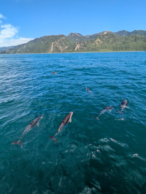 Kaikōura is a stunning town and one of our favourite stops on the South Island, there were turquoise sparkling bays set against the backdrop of the snowy foothills of the Seaward Kaikōura Range. There were opportunities to spot sperm whale (in season), Hectors dolphins, dusky dolphins, fur seals and orcas. Marine animals were abundant in Kaikōura in particular due to the currents and the continental-shelf formation.