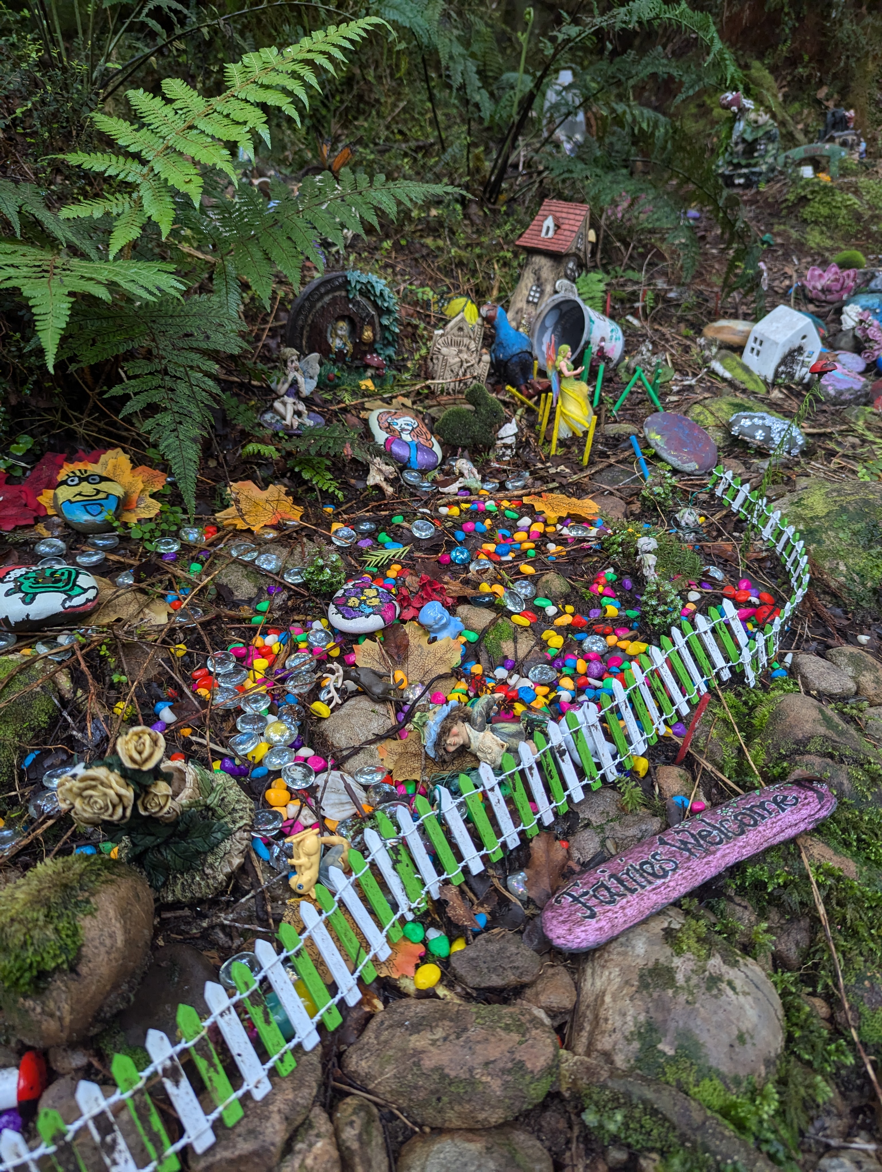 We had a one night stay to break up the drive and enjoyed the Rakaitane Track. There was a Fairy Village with painted rocks and trinklets, a swing bridge, and panoramic views of the lake on a short walking track.
